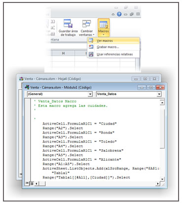 Cuando crea una macro, un conjunto de selecciones de menú y acciones grabadas se guardan en el código de Visual Basic para Aplicaciones (VBA). Para ver el código VBA de la hoja de cálculo, usted necesita personalizar la cinta de opciones de Excel 2010 para mostrar la ficha Programador.