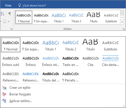 2. En la pestaña Inicio, seleccione el estilo